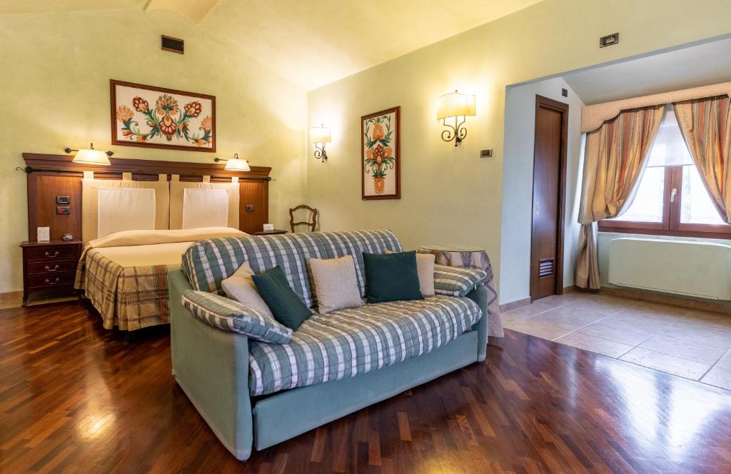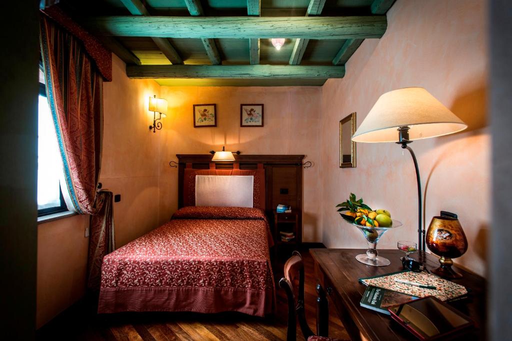 CLASSIC ROOM: The 19 Classic Rooms, located between the ground floor and the first floor, thanks to the characteristic window of medieval memory, make it possible to admire the lush gardens coloured by the nuances of flowers and plants, and the historic courtyard walk. Carefully furnished, some of the Classic Rooms have a king size double bed; others are also available with separate beds. There is the opportunity to add a third bed and a cot on request.