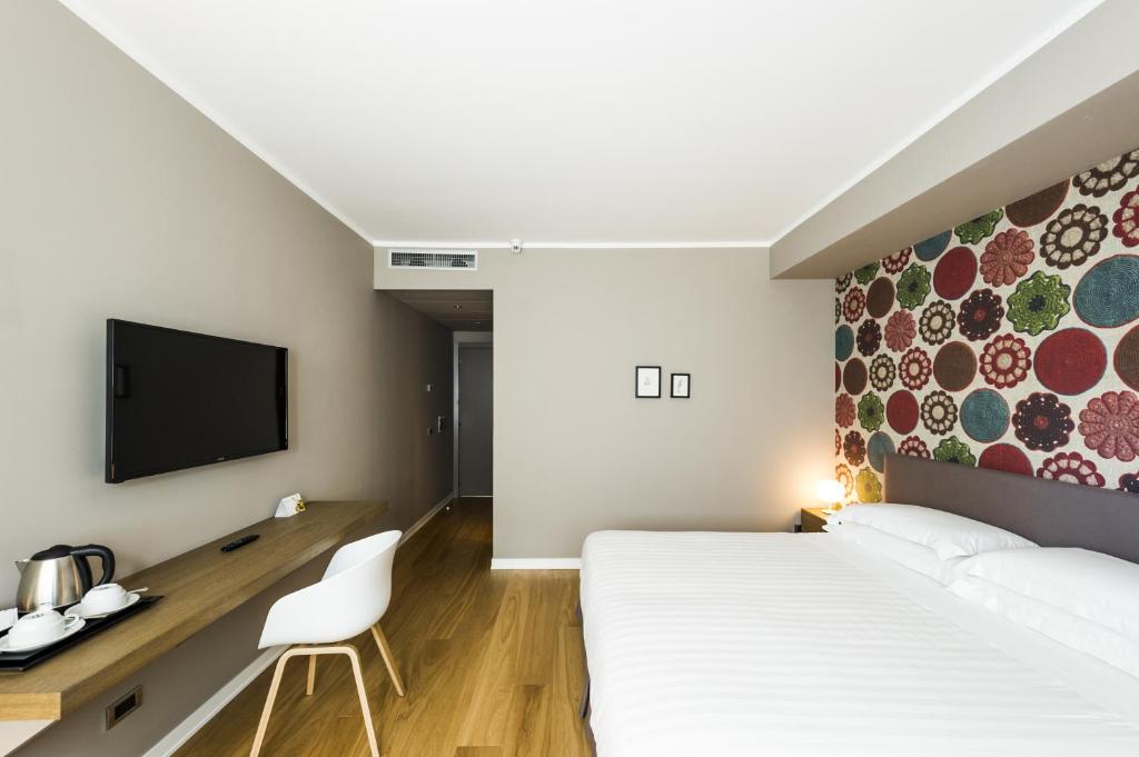 All 70 rooms of the hotel have a refined style. Each room has air conditioning, a private bathroom with a bidet, a shower, and a hairdryer. For a smarter stay, you have unlimited, free Wi-Fi and a smart TV in your room with built-in Chromecast. Superior rooms are available as well including a large private bathroom with both a bathtub and a shower.