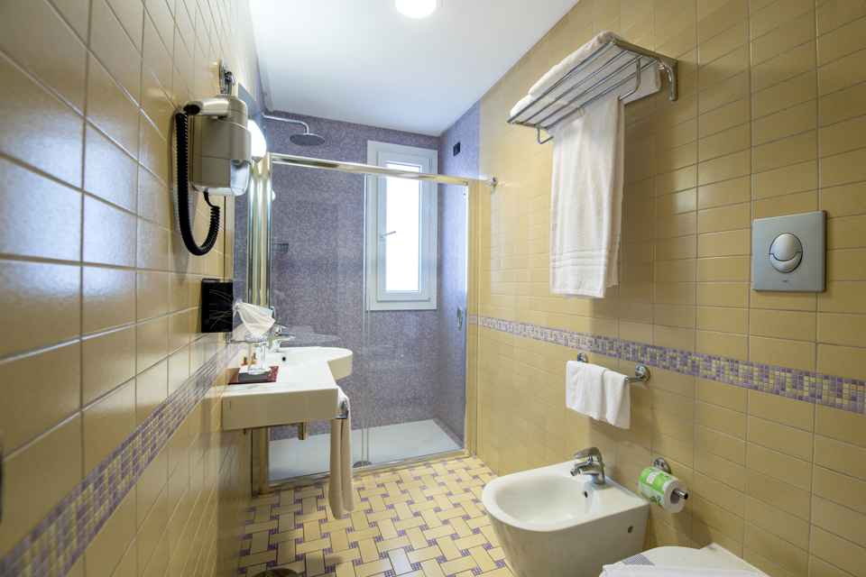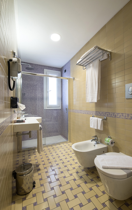The hotel has 56 rooms (3 for disabled person). The rooms have private services, Tv, hairdryer, air conditioning, box shower, safe, frigobar, balcony (but 8 “Standard” rooms + 6 “Classic” rooms with windows), warming, Internet Wireless and LAN.