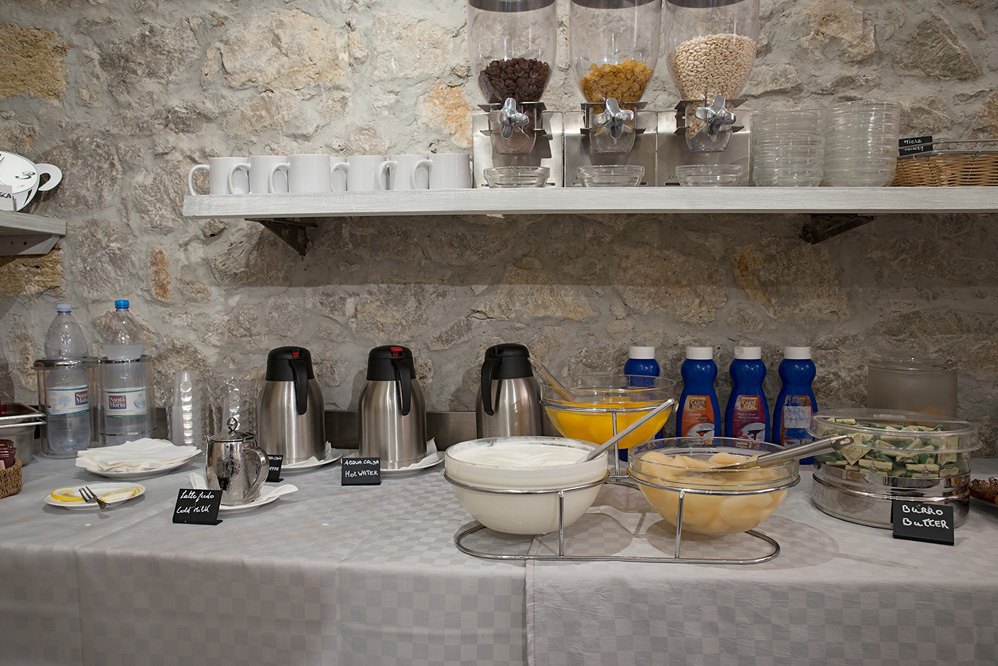 It’s possible to park the car in a secure garage, close to the hotel. The daily rate corresponds to € 15,00 for utilitarian cars, € 18,00 for suvs and € 25,00 for minivans. The garage is open H24 from Monday to Saturday. On Sunday it closes from 11:00 am to 8:15 pm. A free valet service is included from Monday to Saturday, from 08:00 am to 08:00 pm. Free WI-FI. Paid laundry service. Free luggage deposit. Elevator, reading room, stairlift for people with disabilities. The Agora Room, tastefully furnished in contemporary style, has been inaugurated in March 2019. Located on the ground floor of the hotel, it acts as both a meeting place for the hotel’s guests and a meeting room, ideal for business conferences and events in the heart of Palermo.The Agorà Room benefits from natural and artificial lighting and can accommodate up to 30 people in theater-style (with a table for the speakers), 20 people in a U shape-style, 20 people with school desks and 26 people with a big table. The room is equipped with a private bathroom, projection screen, high-speed Wi-Fi connection and 55-inch Samsung Flip multimedia board.