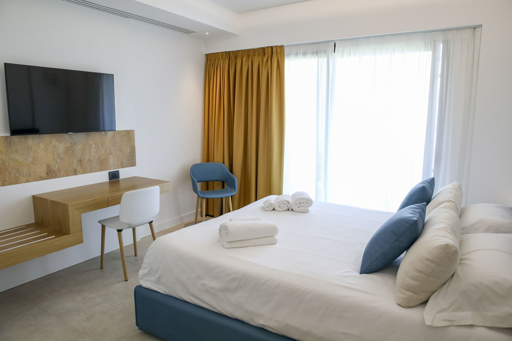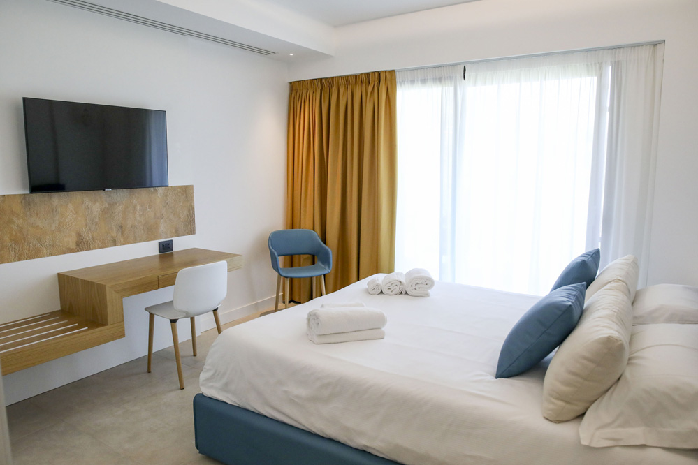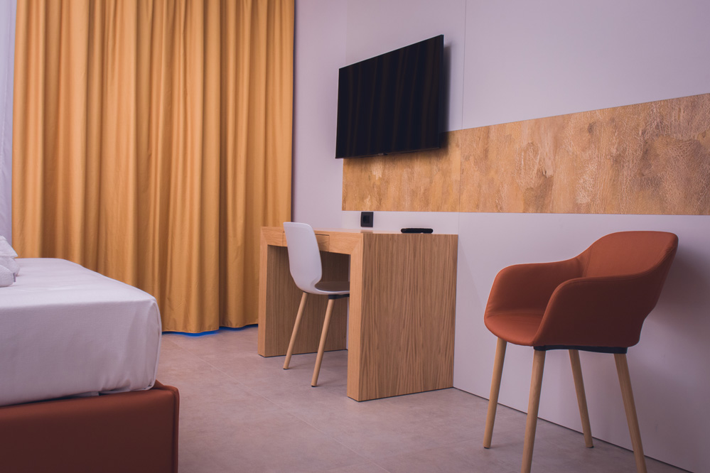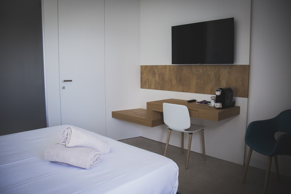 DELUXE: All deluxe rooms are equipped with every comfort and enjoy breathtaking views. The balconies offer a splendid view of the sea on both sides of the building: of the west coast with intense, colorful sunsets and of the east coast with the medieval town of Cefalù. They welcome you by reflecting the colours of the earth and the sea, where the combination of simplicity and elegance is found in the modern furnishings: the details in prickly pear fiber, the light points in the shape of Sicilian pine cones, which wish health and luck to our guests, and finally the fine materials of our island, such as the oak wood with which the furniture in our rooms has been created, will offer you the opportunity to experience a luxurious and unforgettable holiday.