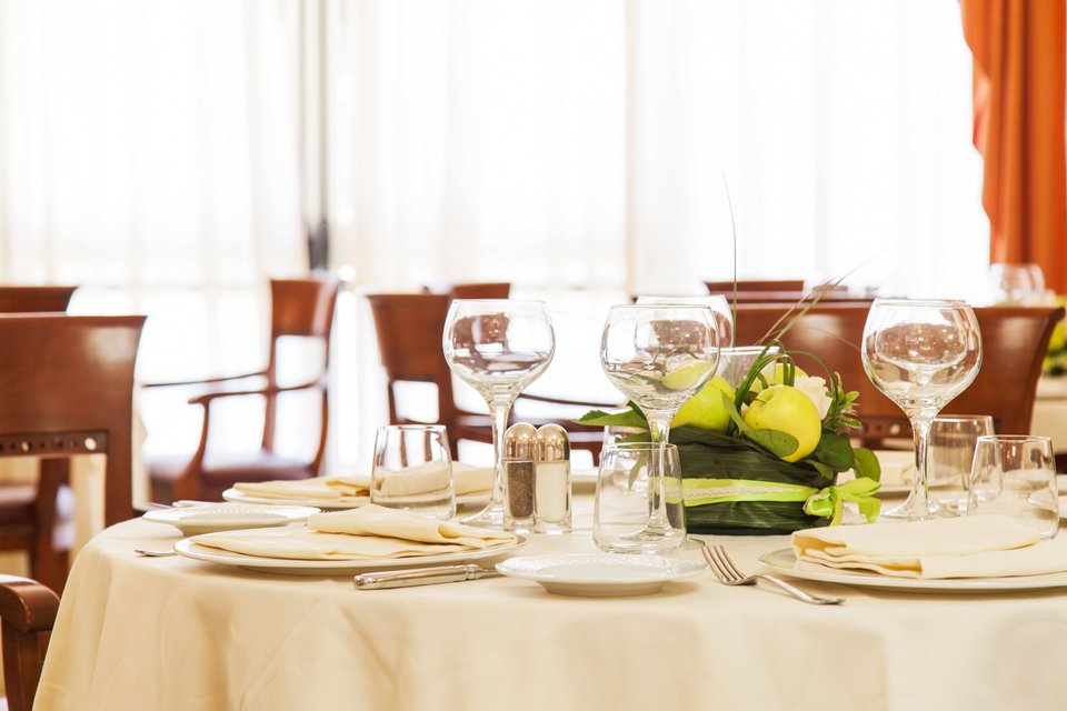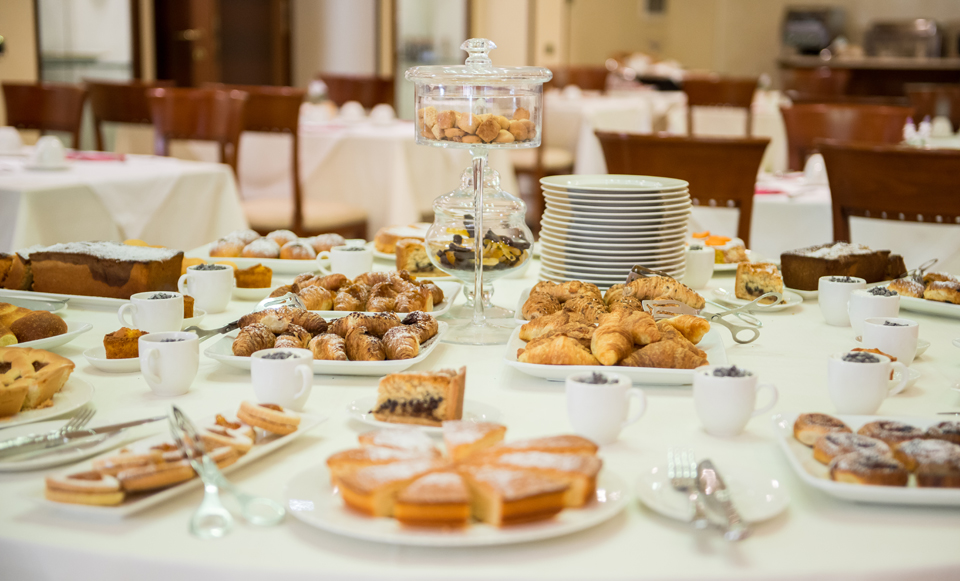 Desayuno buffet. Almuerzo servido con menú a la carta. Servicio de aperitivos con menú a elección, Cena servida con menú a la carta.