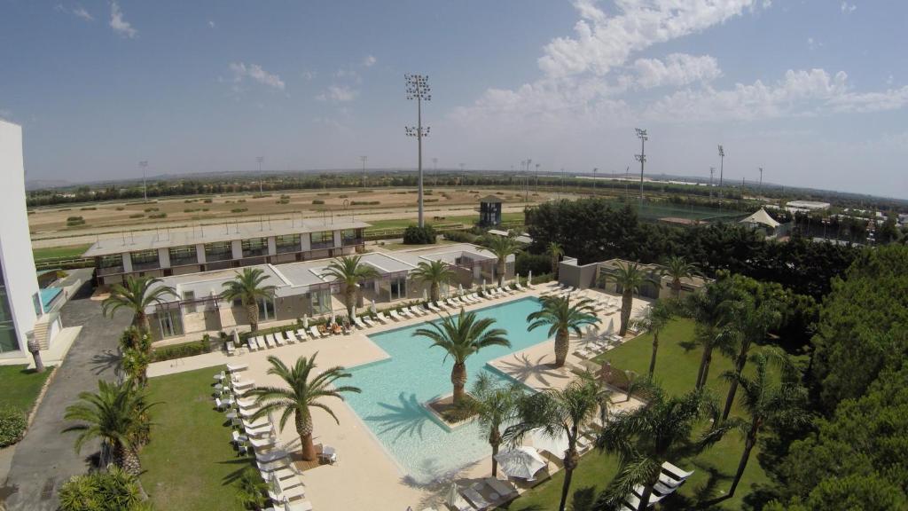 Una ubicación impresionante dentro del Hipódromo del Mediterráneo de Siracusa. Rodeado de un acogedor entorno verde, con un panorama sugestivo, el hotel está situado entre Siracusa y el Valle de Noto, un territorio rico en historia y patrimonio de la Humanidad.