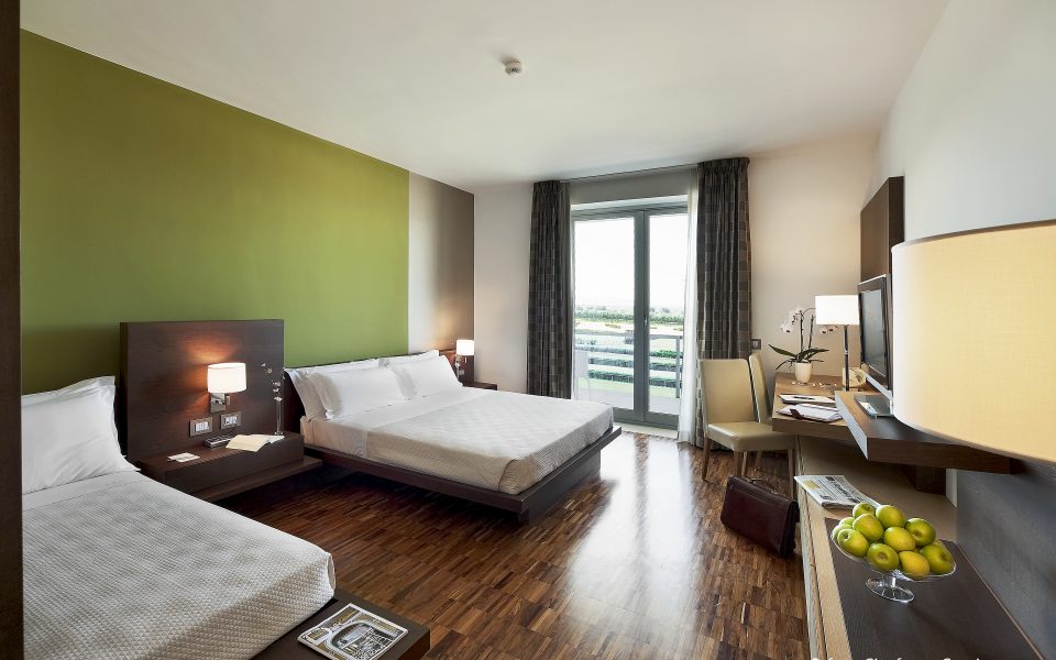 DELUXE: Habitaciones amuebladas con muebles de diseño moderno y acogedor exclusivo, equipadas con amplio balcón con vista panorámica al hipódromo y al Etna, baño privado, TV LCD, WIFI GRATIS, minibar, caja fuerte, aire acondicionado y teléfono directo.