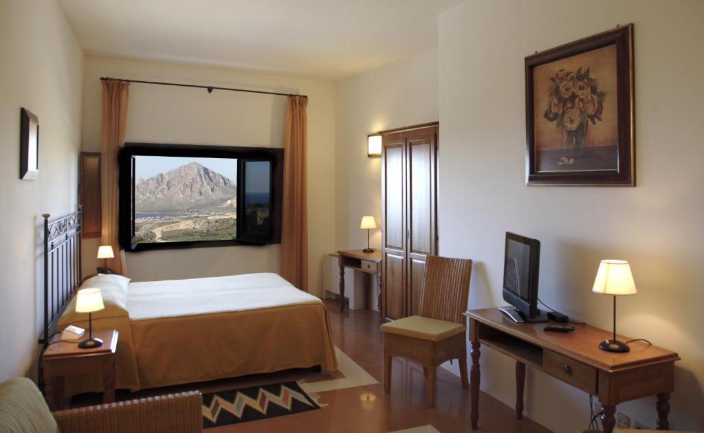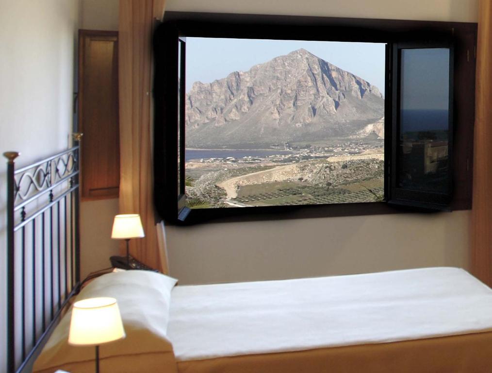 Las habitaciones conservan, de hecho, vigas de madera, suelos de barro rústico trabajados según una técnica tradicional hoy casi desaparecida, y están amuebladas con camas de hierro forjado, alfombras típicas ericinas y muebles de madera de olivo. En el nuevo Baglio, las habitaciones son amplias y luminosas. Amuebladas con referencias al siglo XIX siciliano, con muebles de castaño, alfombras ericinas y camas de hierro, las habitaciones del “nuevo Baglio” ofrecen a los huéspedes todo el confort deseable, con la posibilidad de optar por una espléndida vista al mar sobre el Golfo de Cornino. Las 67 habitaciones, de las cuales 2 son junior suite, están equipadas con servicios privados, teléfono, TV satelital, caja fuerte, mini-nevera y calefacción, mientras que en el “nuevo Baglio” aumenta el confort el aire acondicionado.