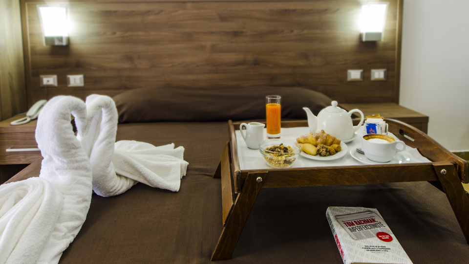 Bar interior, Restaurante “Sala de las Orquídeas” que sirve platos de la cocina mediterránea, espectáculos en el teatro con capacidad para 250 personas y noches temáticas exclusivas, bazar, dos piscinas pintorescas, amplio solárium en la azotea panorámica, campo polivalente para amantes del fútbol 5, tenis y voleibol, bolos, tenis de mesa, fútbol, centro de cuidado infantil (para niños mayores de 4 años donde pueden divertirse con juegos, música, natación y más bajo la supervisión del personal), bar en la glorieta