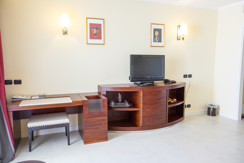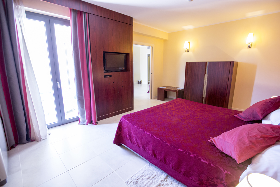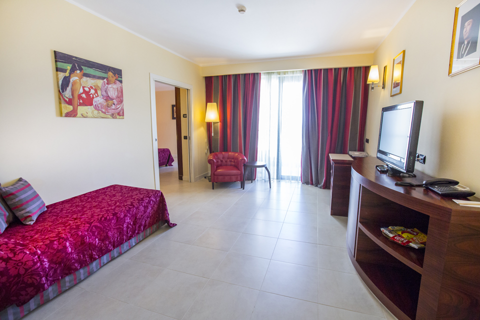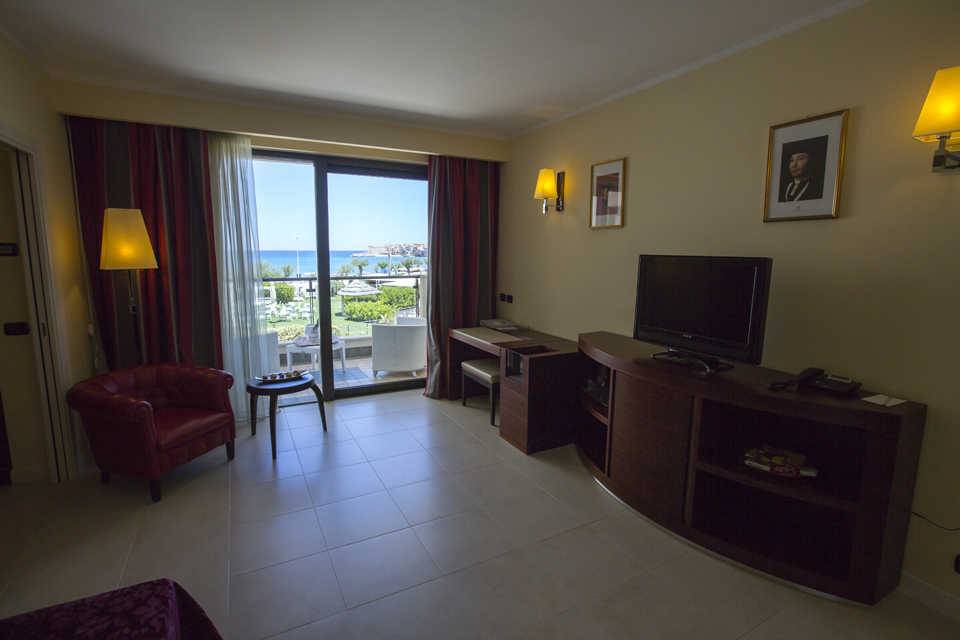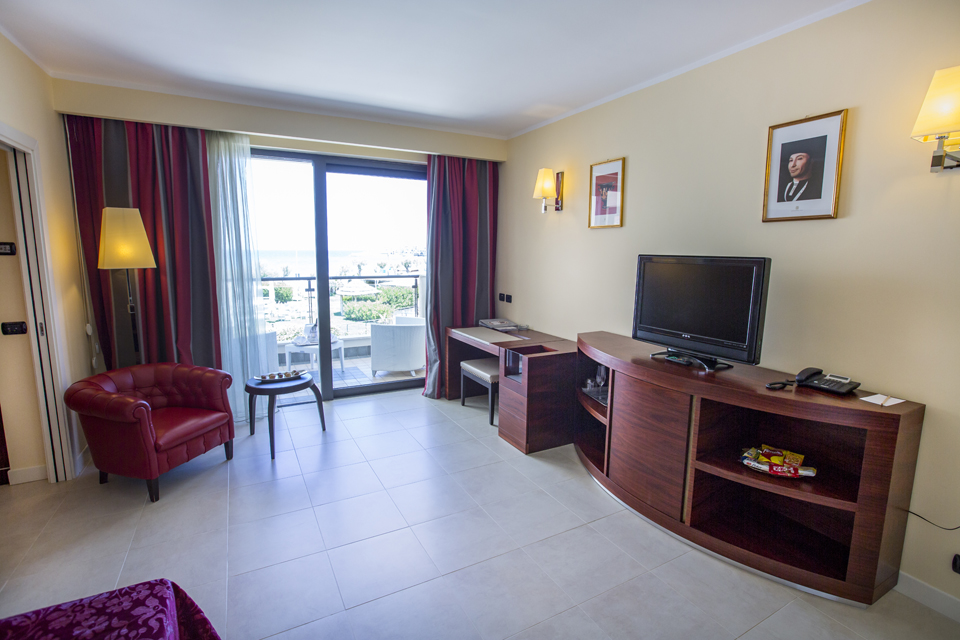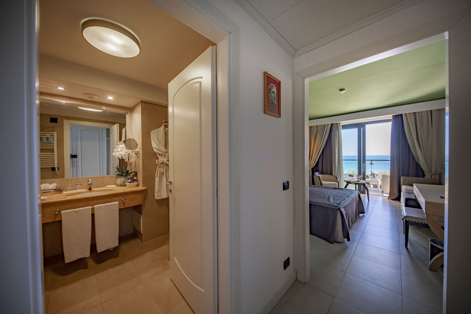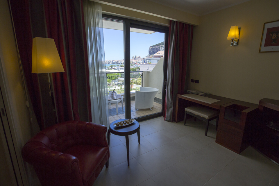 El vestíbulo, grande y acogedor con sus amplias ventanas, ofrece una vista increíble de 360 grados de la bahía. Dentro encontrarás dos candelabros de cristal colgando majestuosos y una escalera principal especialmente diseñada que aporta un sentido de magnificencia a toda la estructura. El hotel cuenta con un SPA con baños de hidromasaje, sauna, baño turco, salas de masaje, camas de agua, sillas de pedicura PODO Spa, tratamientos siberianos y un salón de peluquería. También hay una sala de conferencias para unas 280 personas, equipada con instalaciones de videoconferencia. La piscina (con hidromasaje) y la piscina para niños están ubicadas cerca del café, en el centro del solárium, que también alberga un pequeño anfiteatro para entretenimiento nocturno. Hay un amplio césped con juguetes para niños. La playa privada está justo al otro lado de la calle, a unos 15 metros del hotel, y está reservada exclusivamente para los huéspedes del hotel. Cuenta con un café, baños, duchas, sombrillas de playa y tumbonas disponibles. Allí puedes tomar una bebida en el café o disfrutar tanto de los platos tradicionales de Sicilia como de una cocina moderna en el restaurante. Desde el jardín en la azotea se pueden contemplar las amplias vistas del mar y la playa de Cefalù, una vista encantadora que te llenará de admiración por la ciudad conocida justamente como “la Perla del Mar Tirreno.”