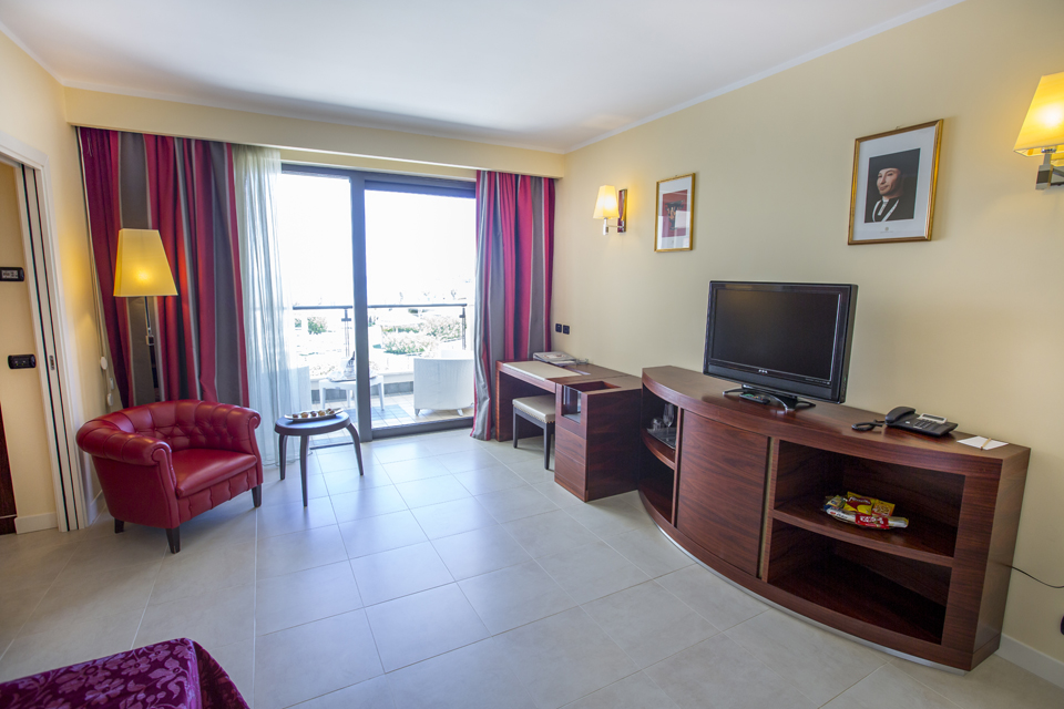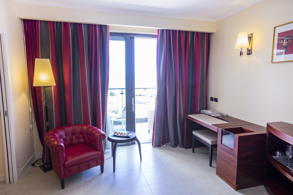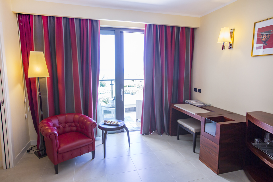 El hotel tiene 77 habitaciones y 6 suites. Están amuebladas con una cama tamaño King, chaise longue, sillón, un escritorio, almacenamiento para equipaje, espejo, caja fuerte, minibar, TV, internet, aire acondicionado. Los baños están equipados con una bañera y una ducha con mampara de vidrio templado. Todas las suites tienen vistas al mar y suelos de parquet, bañeras de hidromasaje (las habitaciones club tienen vista al jardín). Todas las habitaciones y suites cuentan con aire acondicionado, internet, TV satelital y minibar. Las habitaciones Superior están bañadas por el sol, tienen grandes balcones con vistas al mar. Las Grandes Suites tienen baño/WC y están equipadas con bañera de hidromasaje, ducha, lavabos dobles. También cuentan con un vestíbulo de entrada, una sala de estar y baño/WC con área de vestidor.
