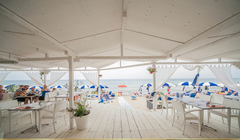 La playa privada está ubicada justo al otro lado de la calle, a unos 15 metros del hotel, y está reservada exclusivamente para los huéspedes del hotel
