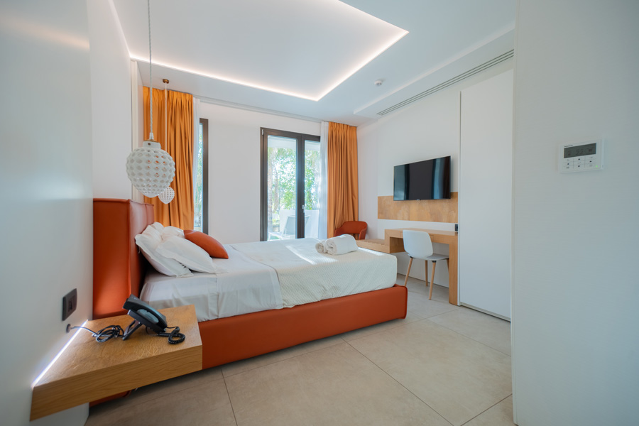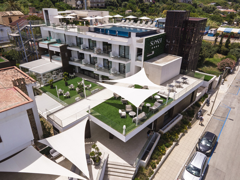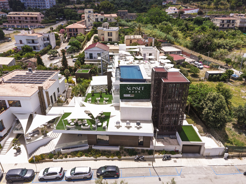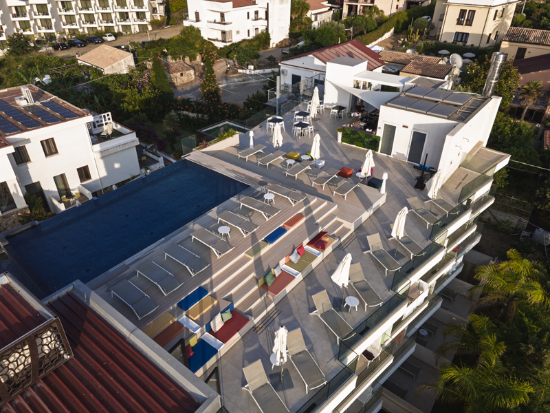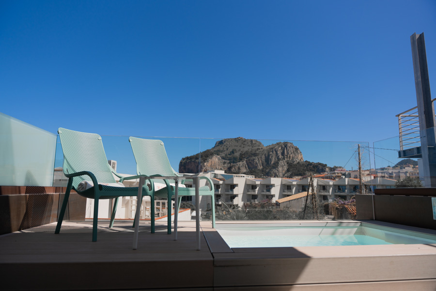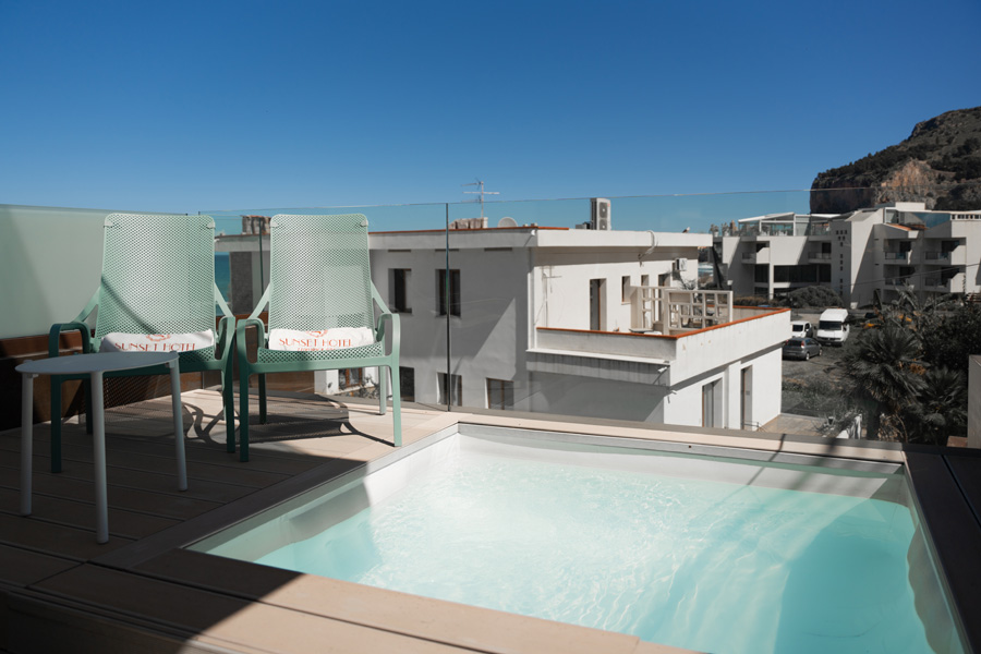 JUNIOR SUITE CON PISCINA PRIVADA: Las Junior Suite cuentan con amplios balcones con piscina privada y solárium, que le permitirán disfrutar de atardeceres inolvidables con vista al mar y a la ciudad medieval de Cefalú. Se caracterizan por un ambiente de clase con líneas modernas y decididas, que remite en los mínimos detalles al tema principal del diseño del Sunset Hotel: la elegancia de la sicilianidad. El mobiliario con detalles en fibra de higo chumbo, la piña siciliana, augurio de salud y suerte, y los colores de nuestra tierra dan la bienvenida a nuestras habitaciones de ensueño.