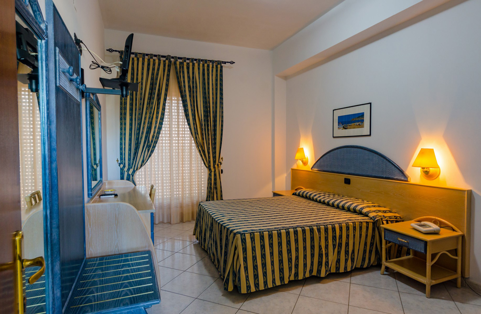 El hotel tiene 42 habitaciones, todas completamente equipadas con baño privado con ducha, secador de pelo, artículos de tocador, teléfono, servicio de despertador, televisión por satélite, aire acondicionado y calefacción, proporcionándole todo lo que necesitará para una estancia relajante y placentera. Es posible reservar una habitación con vistas al mar o con balcón (con cargo adicional). (máximo 4 adultos por habitación)