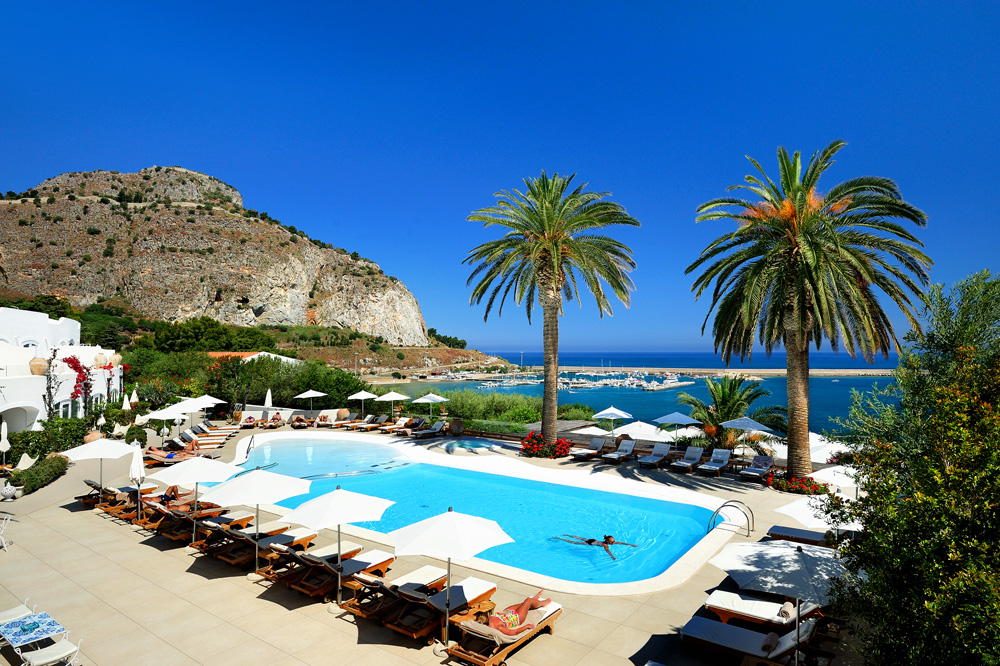 Hotel boutique inmerso en un extenso parque a 2 km del centro histórico de Cefalù, patrimonio de la UNESCO, sigue con arquitectura mediterránea los pliegues de la bahía de la Caldura, adentrándose en las calas de las que toma su nombre.