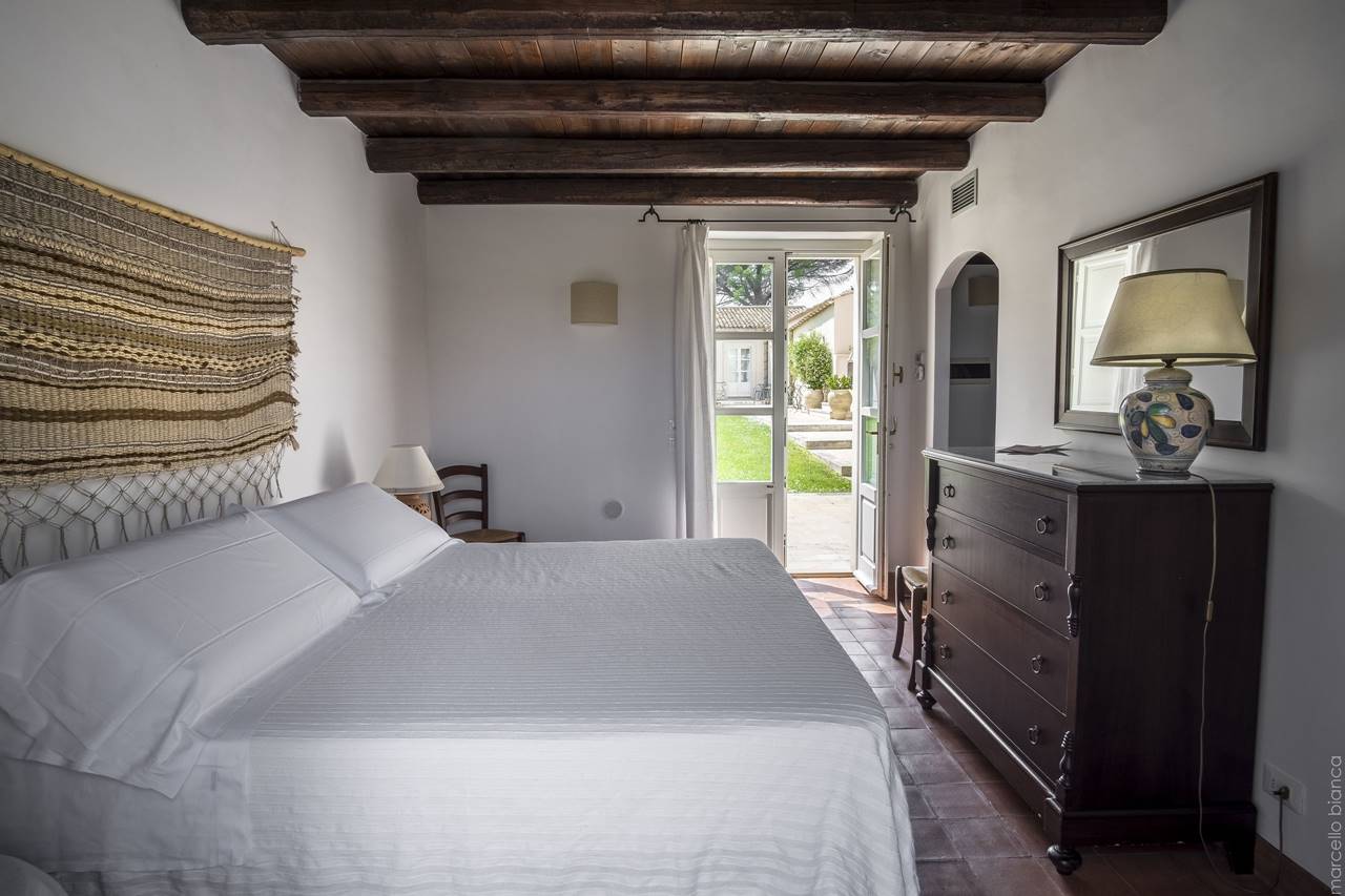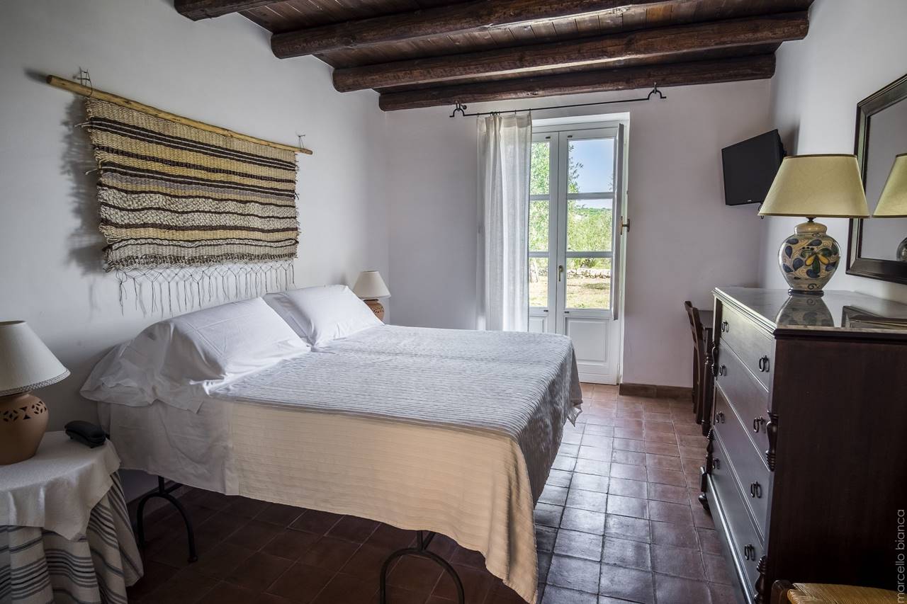 La piedra caliza blanda de Noto y la piedra dura de Modica, tejas de arcilla clara, madera oscura para los techos, y barro cocido siciliano para los suelos confieren a las habitaciones de la Masseria una atmósfera atemporal. También los muebles son los típicos de las antiguas casas campesinas: camas con caballetes de hierro, cajoneras de madera oscura, tejidos rústicos, cerámicas de Caltagirone y Santo Stefano di Camastra, que se mezclan con elementos contemporáneos, como los tapices tejidos a mano en telar que entrelazan fibras y materiales naturales, con un gusto sobrio y a la vez refinado. A una estética deliberadamente tradicional se suman soluciones de instalaciones orientadas al ahorro energético y caracterizadas por altos estándares de confort y funcionalidad, como la calefacción por suelo radiante y dispositivos “inteligentes”. Los cuerpos de las habitaciones, situados a distancia de los espacios comunes, garantizan tranquilidad y privacidad y ofrecen una experiencia de estancia inolvidable.