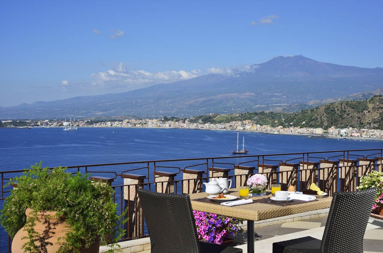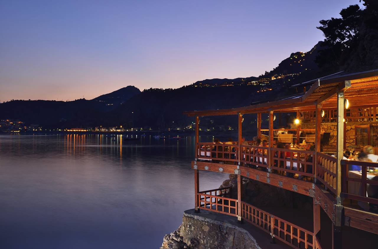 Bares y restaurantes: en este lugar único y cautivador no podía faltar una atención especial a la cocina (en preparación), orgullo de la tradición siciliana. Cada uno de los 3 restaurantes dentro del hotel ofrece a los huéspedes una interpretación única de este precioso tesoro. El restaurante Naxos, con vista a la bahía de Naxos, sirve la típica cocina siciliana y también platos de cocina internacional. El restaurante Scogliera, ubicado en amplias terrazas junto al mar, ofrece al mediodía un buffet abundante y platos de mariscos, mientras que por la noche te conquistará con su romanticismo: luz de velas y menú a la carta basado en la pesca del día para combinaciones refinadas que te sorprenderán. El restaurante Alcantara, por su parte, abre sus puertas por la mañana dándote un especial “buenos días” con un buffet americano, para un desayuno internacional abundante que no olvida la peculiaridad de la tradición siciliana, para disfrutar sentado en la terraza admirando el humeante Etna y el mar de la bahía de Naxos besado por los primeros rayos del sol.