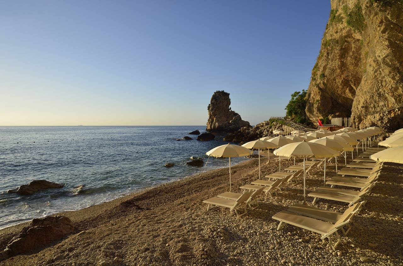 Playa privada, equipada con sombrillas, tumbonas y toallas de playa gratuitas