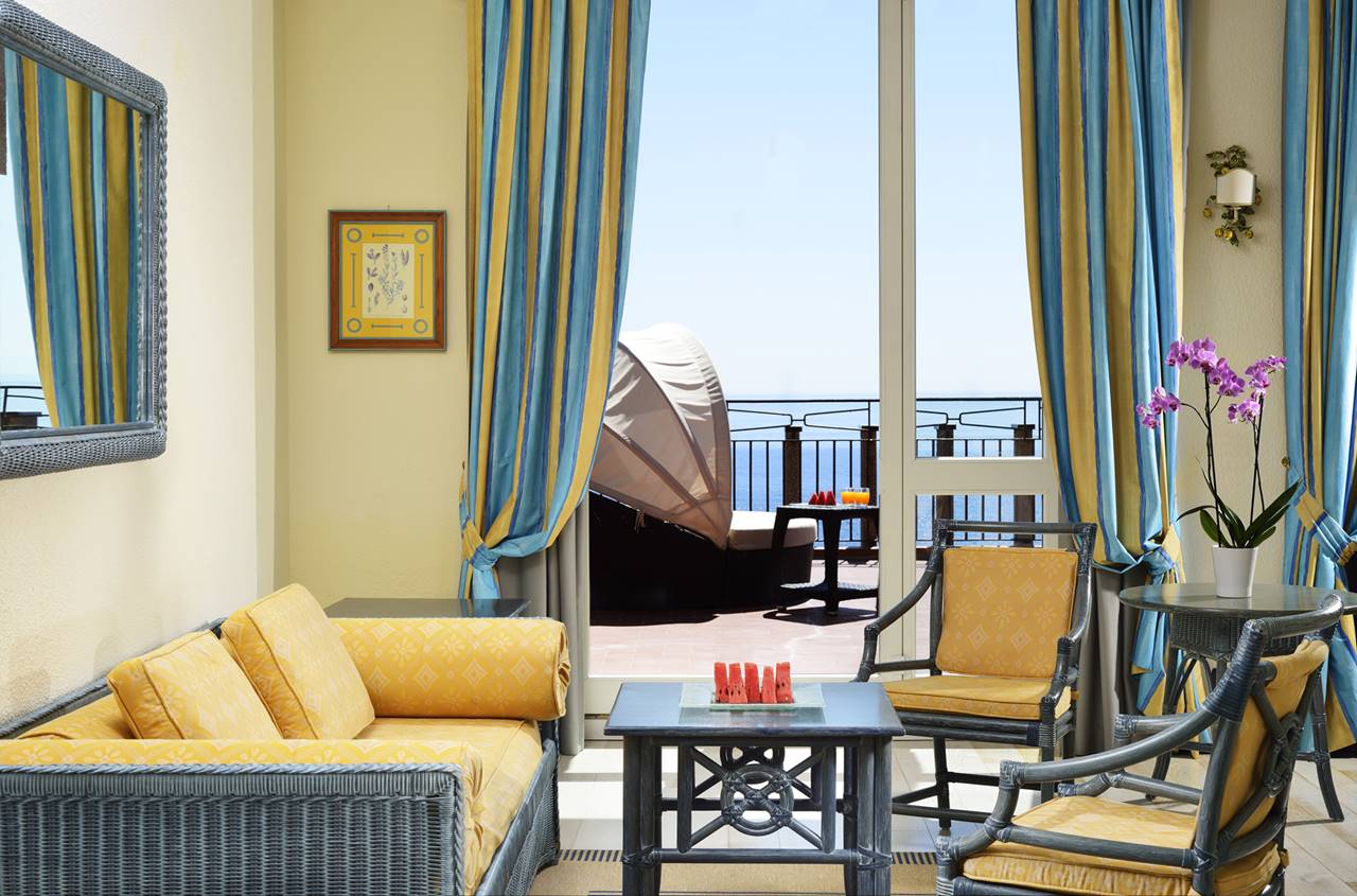 Habitaciones Deluxe: Habitaciones dobles con posibilidad de añadir una tercera cama. Balcón con vista al mar.