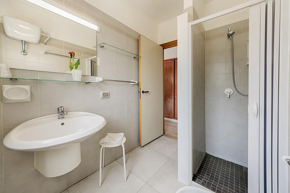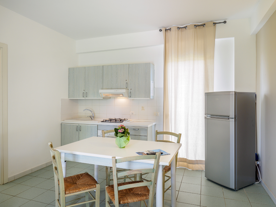L’appartamento dispone di un soggiorno con angolo cottura e un divano singolo, una camera da letto con un letto matrimoniale e di una camera da letto con due letti singoli. Minimo 2 adulti e due bambini, massimo 2 adulti e 3 bambini, o 3 adulti e 2 bambini. Residence con angolo cottura, Trilo 4/5 posti letto e Mono al secondo piano 2/3 posti letto con terrazza.