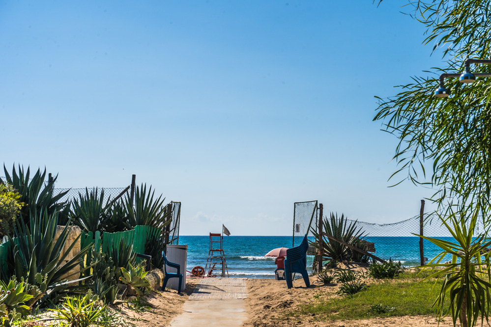 Intimo e colorato albergo 3 stelle a Marina di Ragusa fronte mare con una spiaggia privata attrezzata.