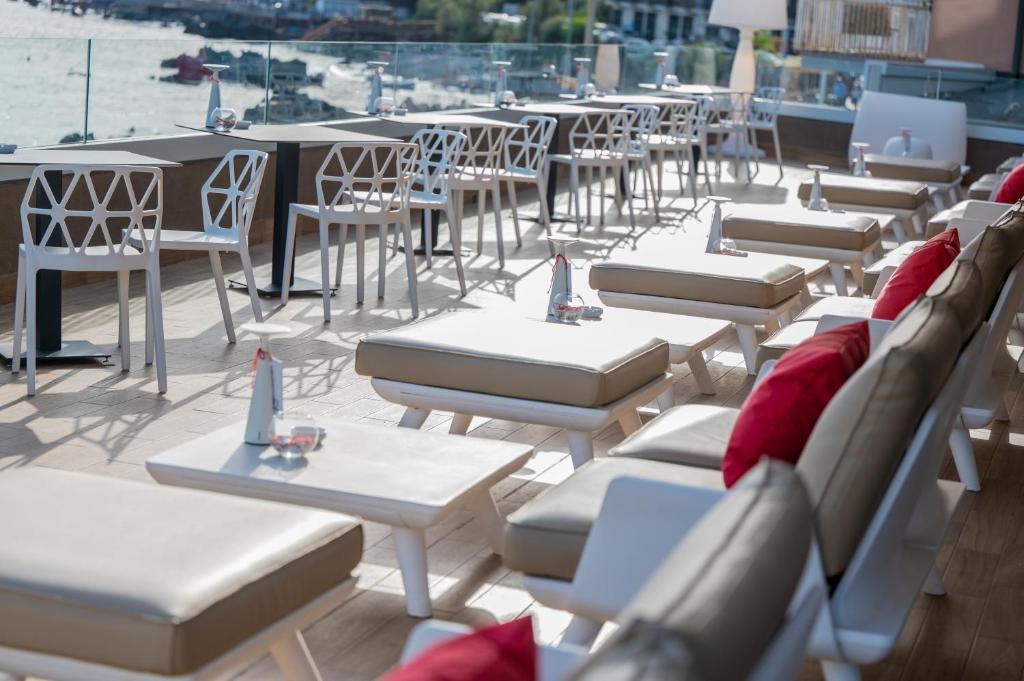 Tutte le camere sono arredate con elementi di design contemporaneo suddivisi in Classic, Superior e Deluxe, quasi tutte le nostre camere beneficiano almeno di uno scorcio sulla suggestiva Riviera dei Ciclopi, fino alla vista di alcune decisamente più ampie, per un panorama "infinito". Tutte dotate doccia, minibar, cassaforte, TV LED, telefono, WIFI gratuito, linea cortesia, servizio biancheria giornaliero.
