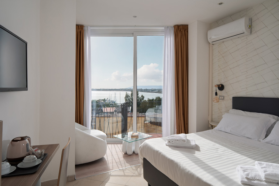 Entrando in hotel il visitatore può già ammirare l'intera città grazie ad un ascensore panoramico con vista su Ortigia e sul porto di Siracusa. La meravigliosa visuale si può avere anche da alcune camere di un'ala dell'edificio. L'hotel offre ai propri ospiti un ambiente sobrio e raffinato senza dimenticare le tradizioni culinarie quali le torte e dolci fatti in casa ed i suoi piatti. L'Hotel si dispone su tre piani ed offre 24 camere arredate con cura, colorate ed accoglienti, un giardino per il relax degli ospiti, una sala lettura e un'ospitale ed elegante sala da colazione.
