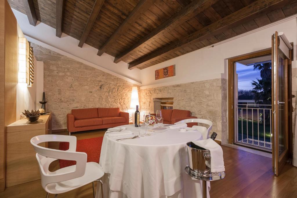 La suite "Principe" è la camere più prestigiosa dell'hotel. Con un design contemporaneo, è situata al primo piano da dove gode di splendida veduta sul parco, sulla piscina e sui vicini monti Iblei. Il confort del letto king-size, la vasca idromassaggio, la doccia e l’accogliente soggiorno la rendono ideale per coppie in luna di miele o per chi cerca il massimo relax e benessere.