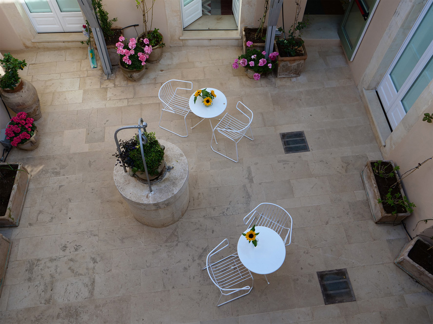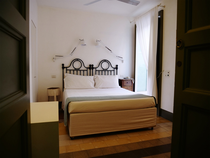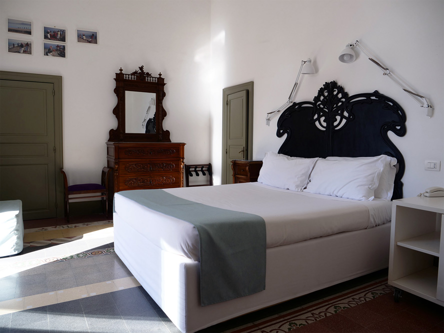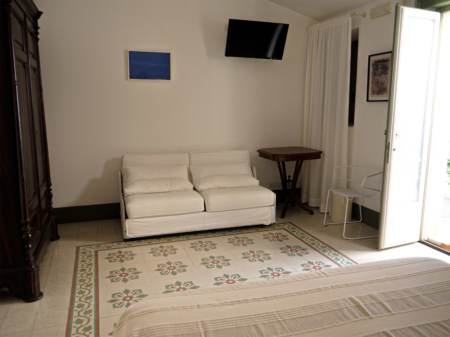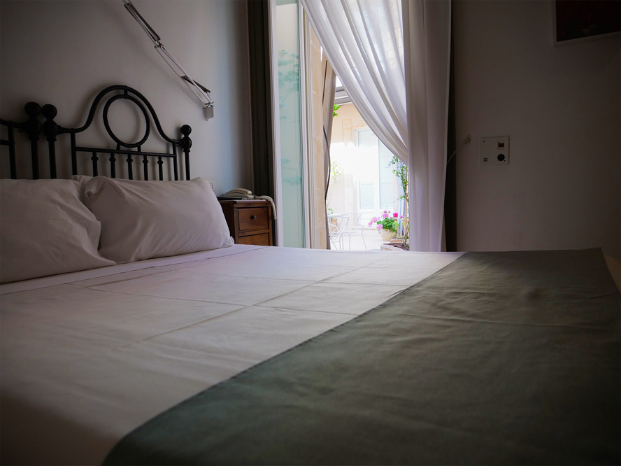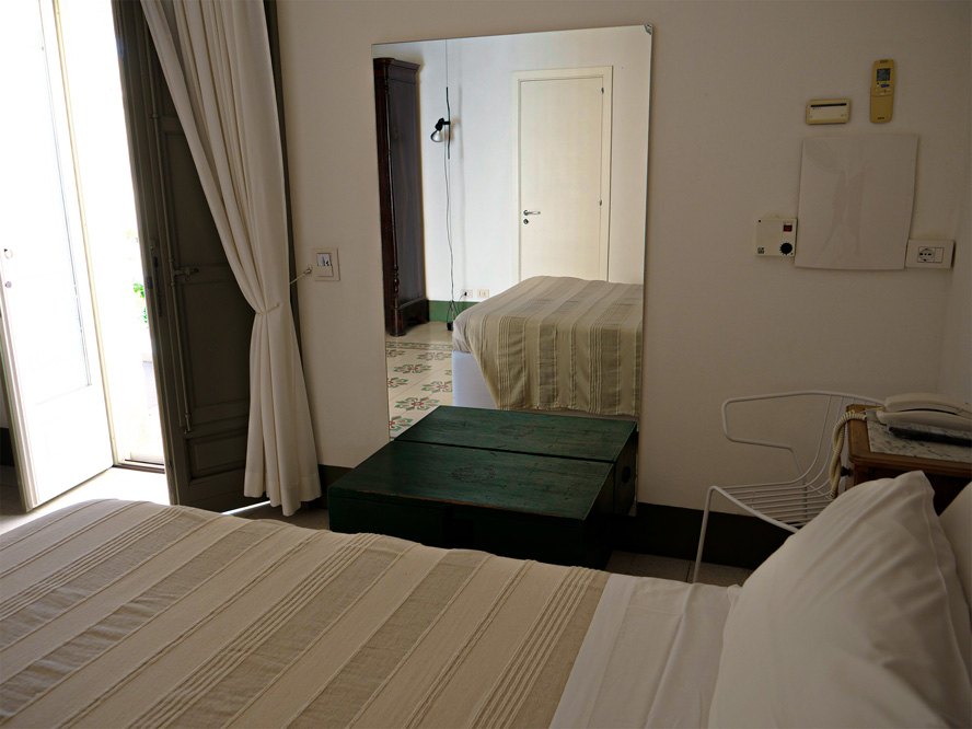 STANDARD: Le camere standard sono disposte al piano terra e si affacciano tutte nella corte interna della struttura. La luce che filtra dalle portefinestre rende le camere luminose ed aerate.