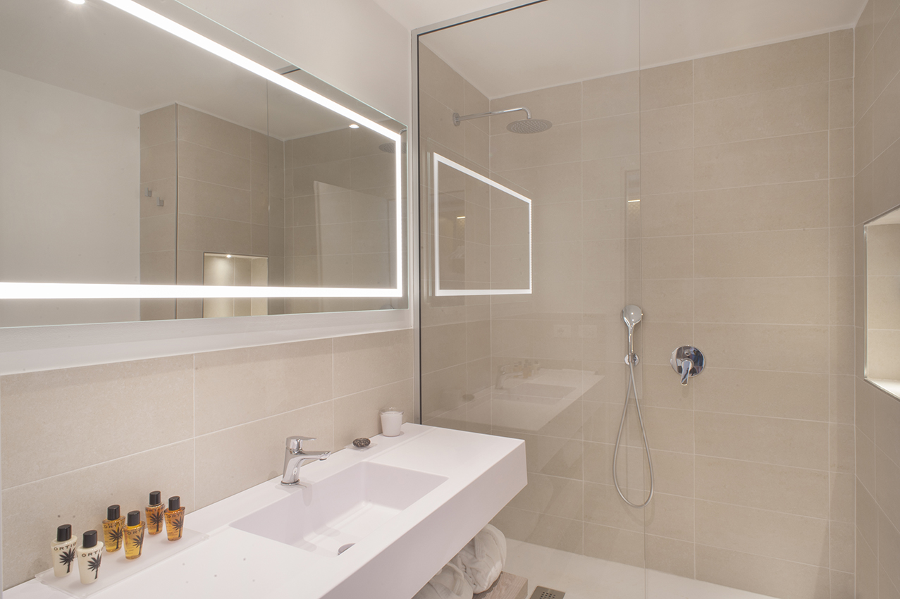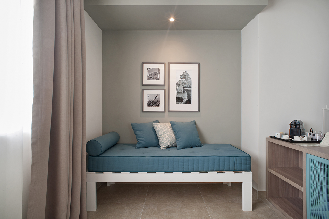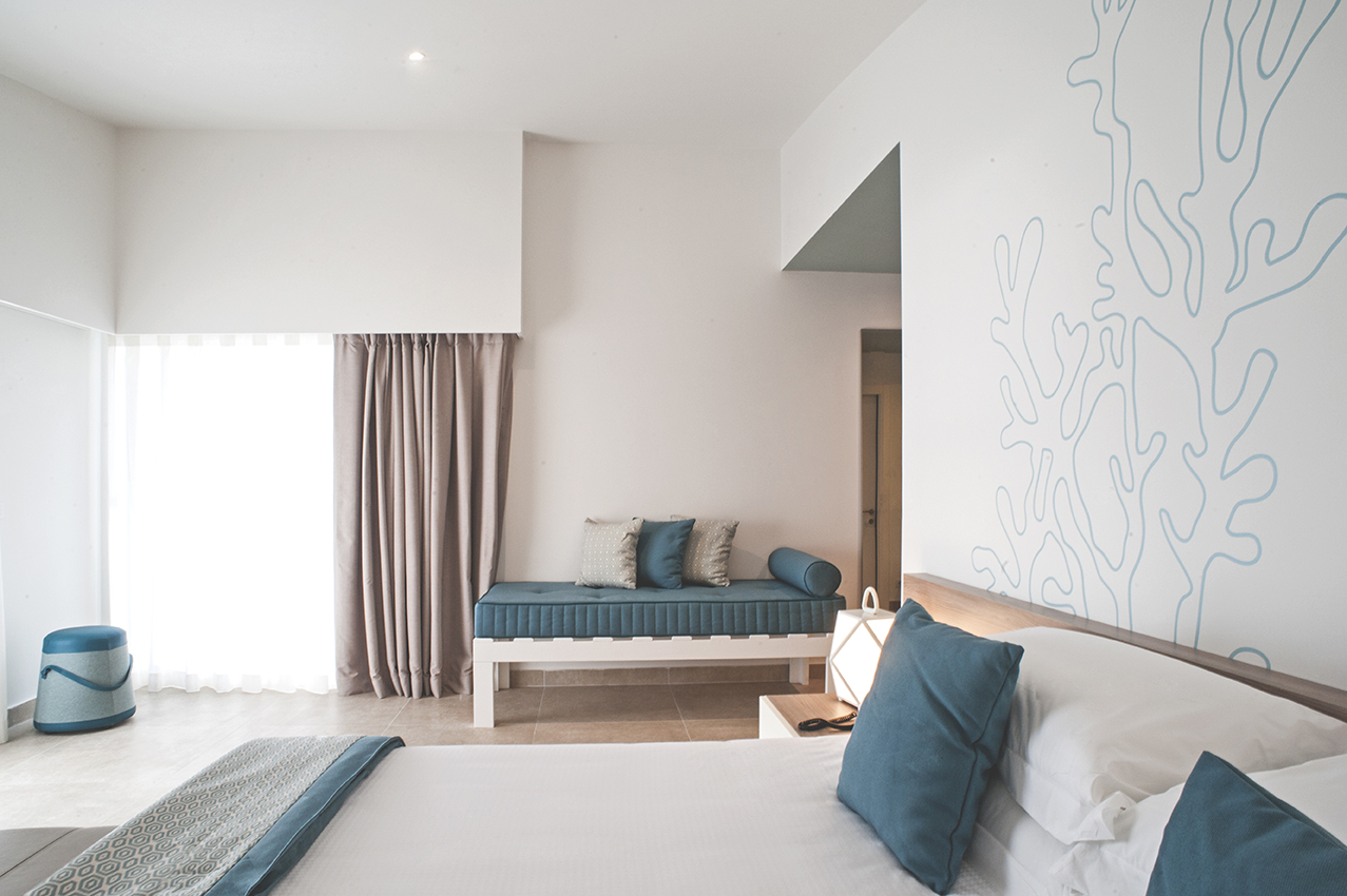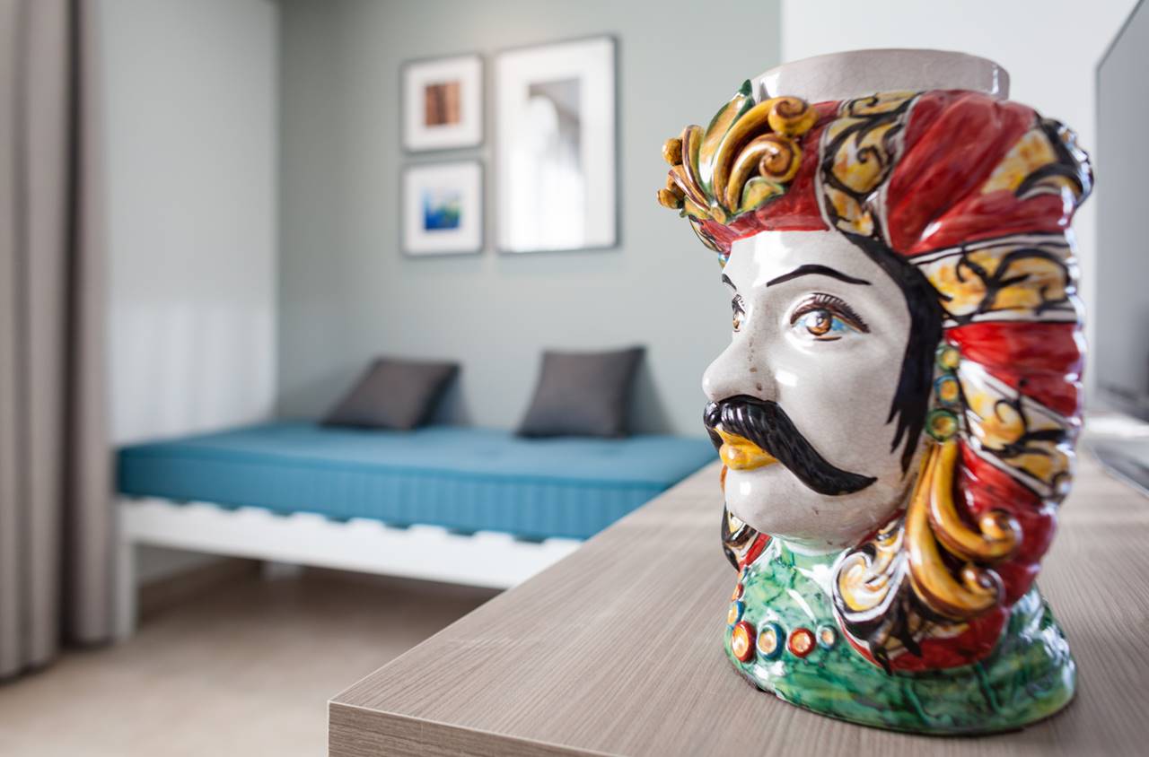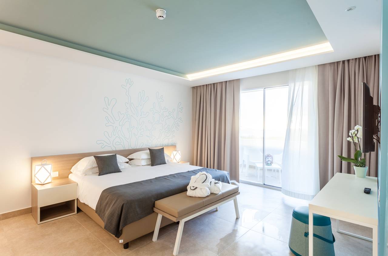 Le camere Deluxe sono ambienti eleganti dal design mediterraneo, di circa 25 mq. Posizionate dal primo al terzo piano, possono regalarti una suggestiva vista mare e hanno tutte un ampio balcone esterno. Le camere dispongono di letti separati o letto matrimoniale. Nella combinazione tripla e quadrupla, sono dotate di divano letto o letti a castello.