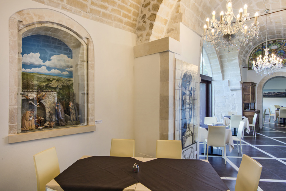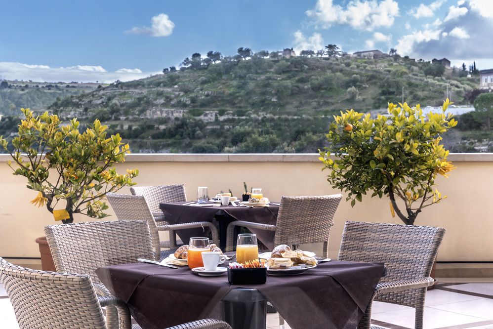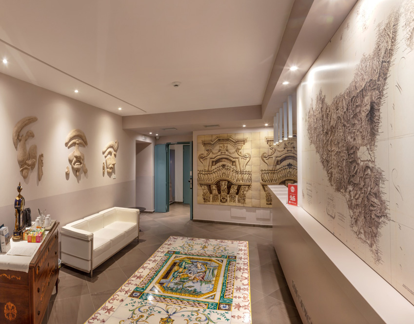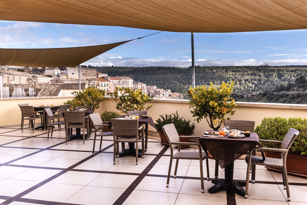 Un luogo suggestivo dove l’efficienza di un servizio a Quattro Stelle si coniuga alla perfezione con la cordialità tipica del territorio. Noi amiamo la nostra terra e vogliamo regalarti un’esperienza di viaggio indimenticabile a Ragusa Ibla. L’hotel offre soluzioni per chiunque abbia bisogno di uno spazio per lavorare, nel Smart Work Hub, e per le aziende che necessitano di spazi per meeting e riunioni. Arredi d’arte e storiche produzioni di artisti locali arricchiscono ogni angolo dell’hotel: il tunnel d’ingresso con gli azulejos e le maioliche, la reception con i mascheroni scolpiti e i mosaici in ceramica, la sala colazioni con il presepe scolpito, i corridoi con splendide foto che rappresentano scorci di Ragusa Ibla e con le riproduzioni delle principali opere delle sue chiese. L’hotel è racchiuso in un giardino privato di 3.000 metri quadrati e rappresenta un’incantevole ed inaspettata oasi di serenità e relax dove rigenerarsi e fuggire dal quotidiano ritmo frenetico, unitamente ad una vista panoramica sulla Vallata di Santa Domenica.